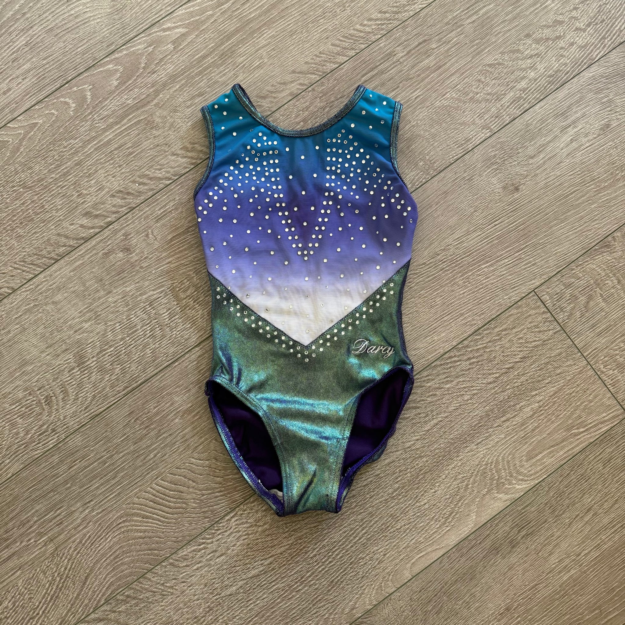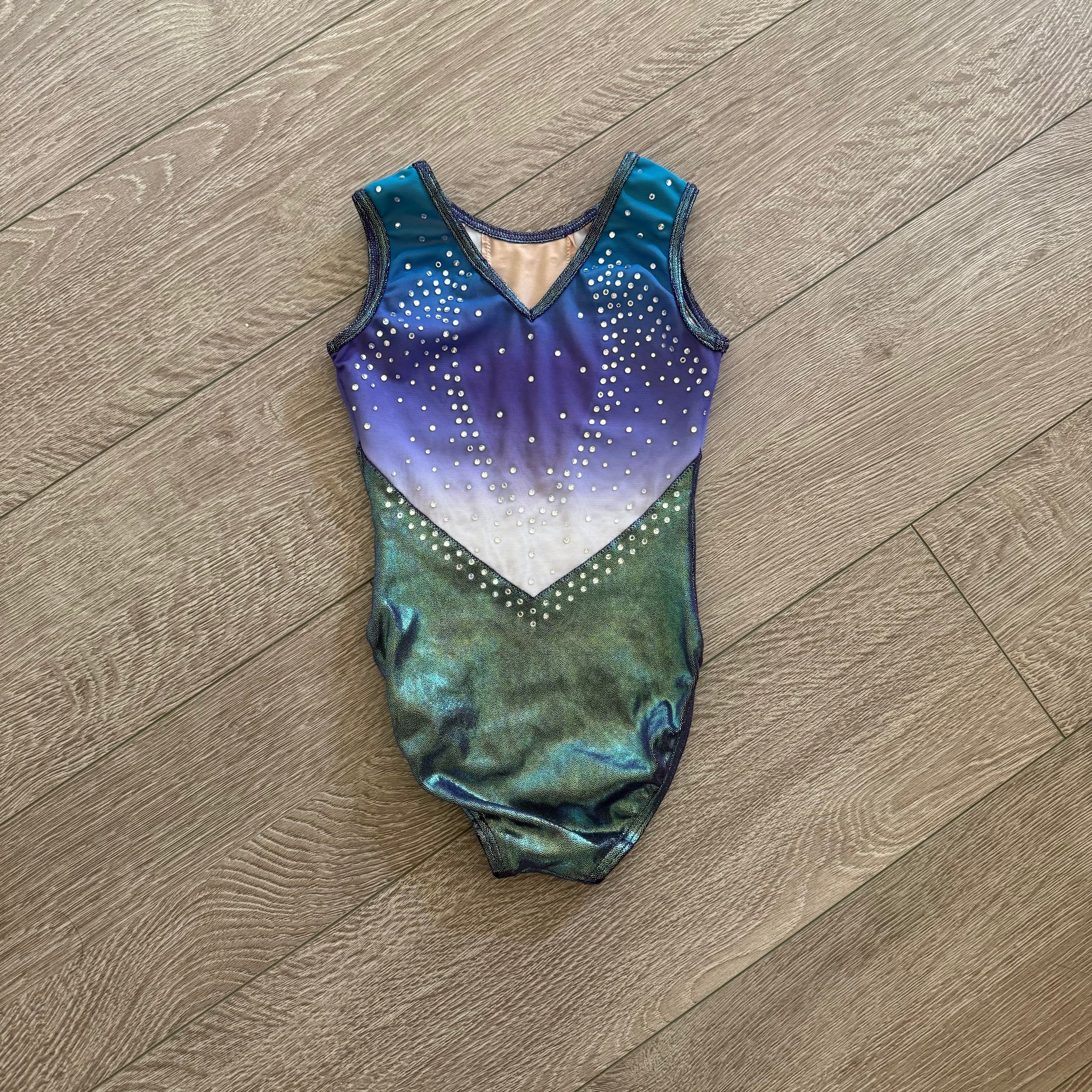 Darcy, Mermaid Ombre Leotard in Teal Purple White with Stones, Child 5/6 - Final Sale