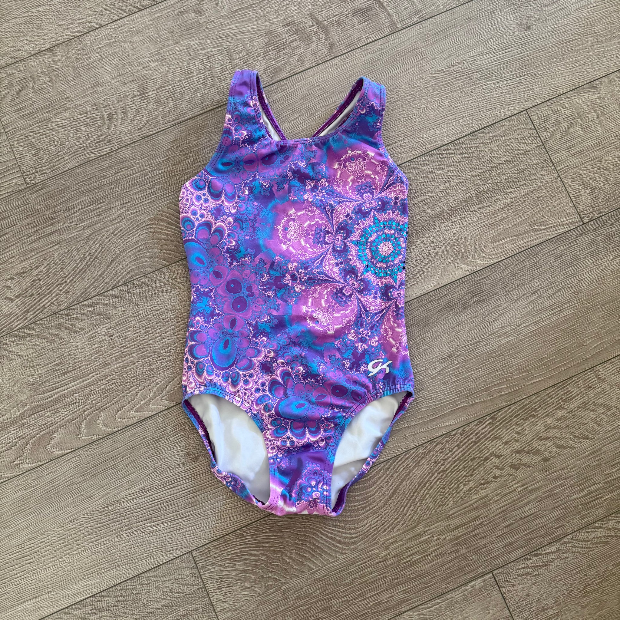GK Elite, Purple Swirl and Spangles Leotard, CL Child 8/10 - Final Sale