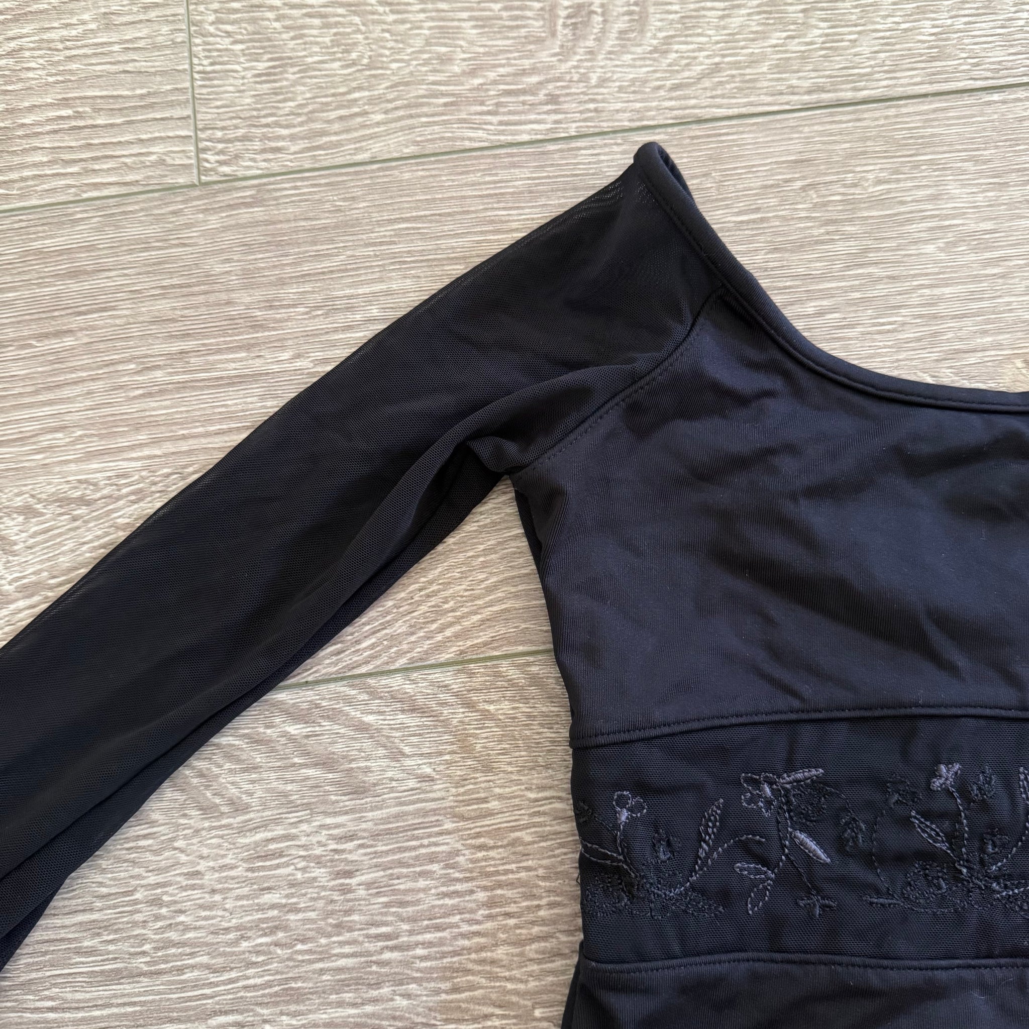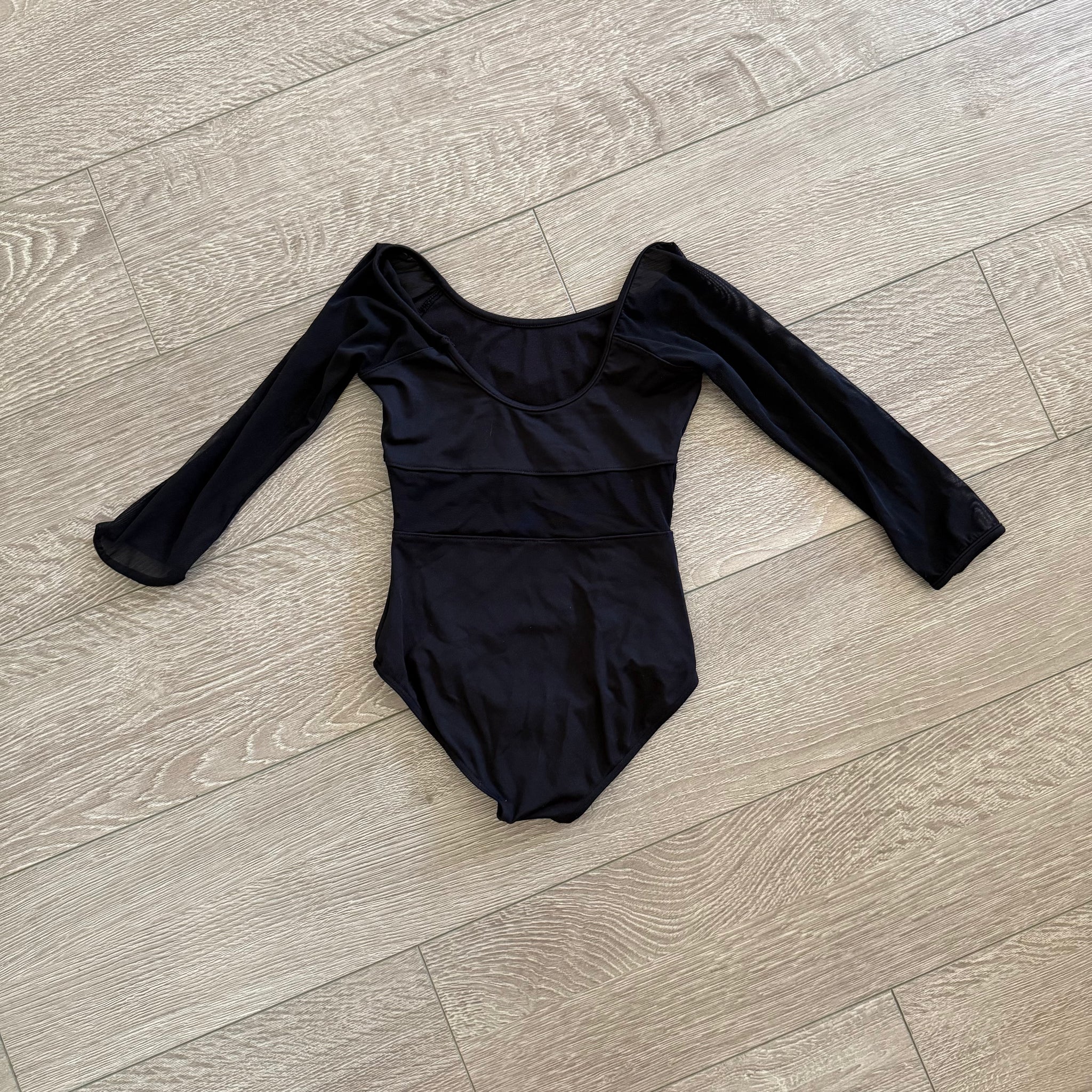 Mirella, Mesh Detail Mesh Sleeves Leotard in Black, Child 6/7 - Final Sale