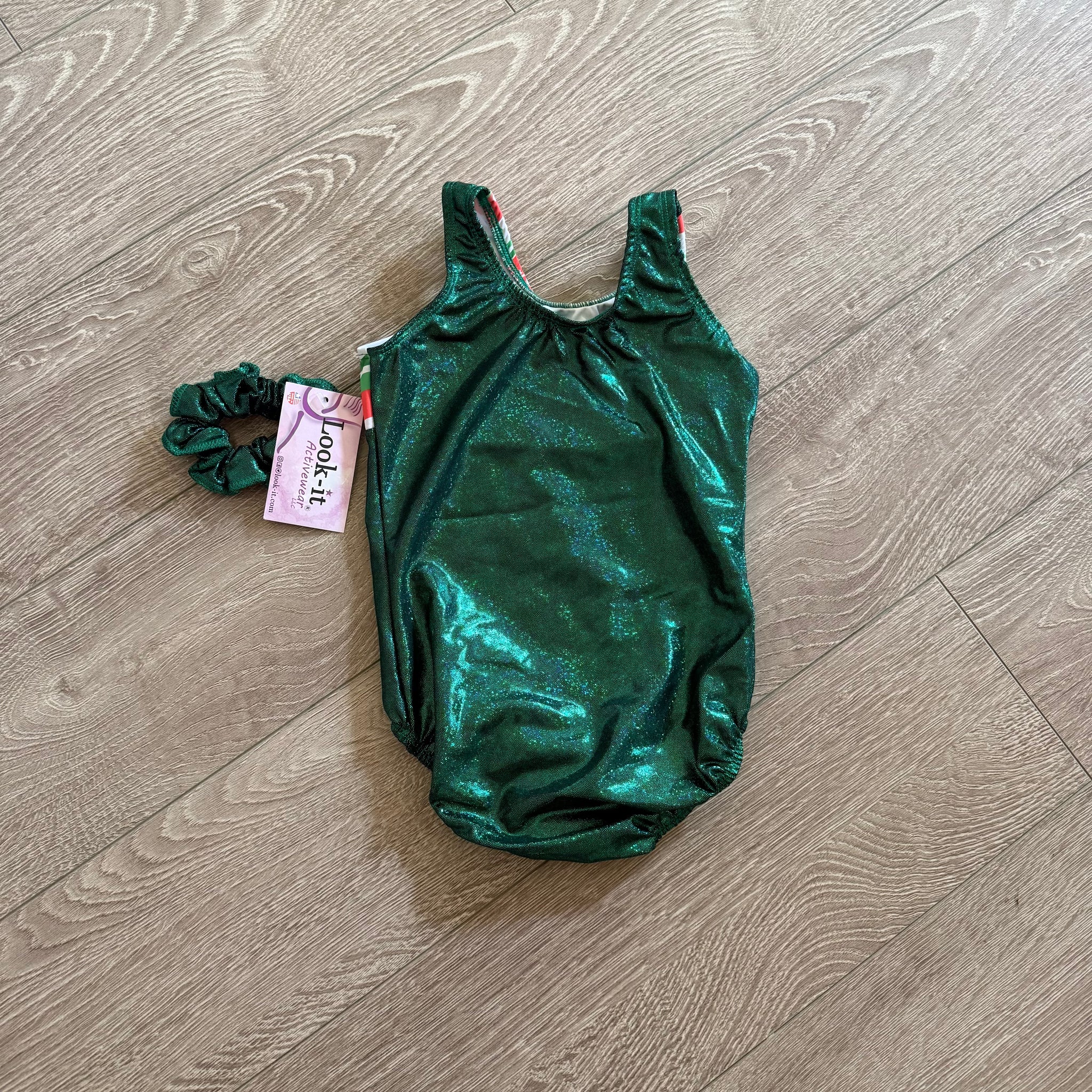 Holly Jolly Christmas Reindeer Leotard in Green, CM Child 5/6