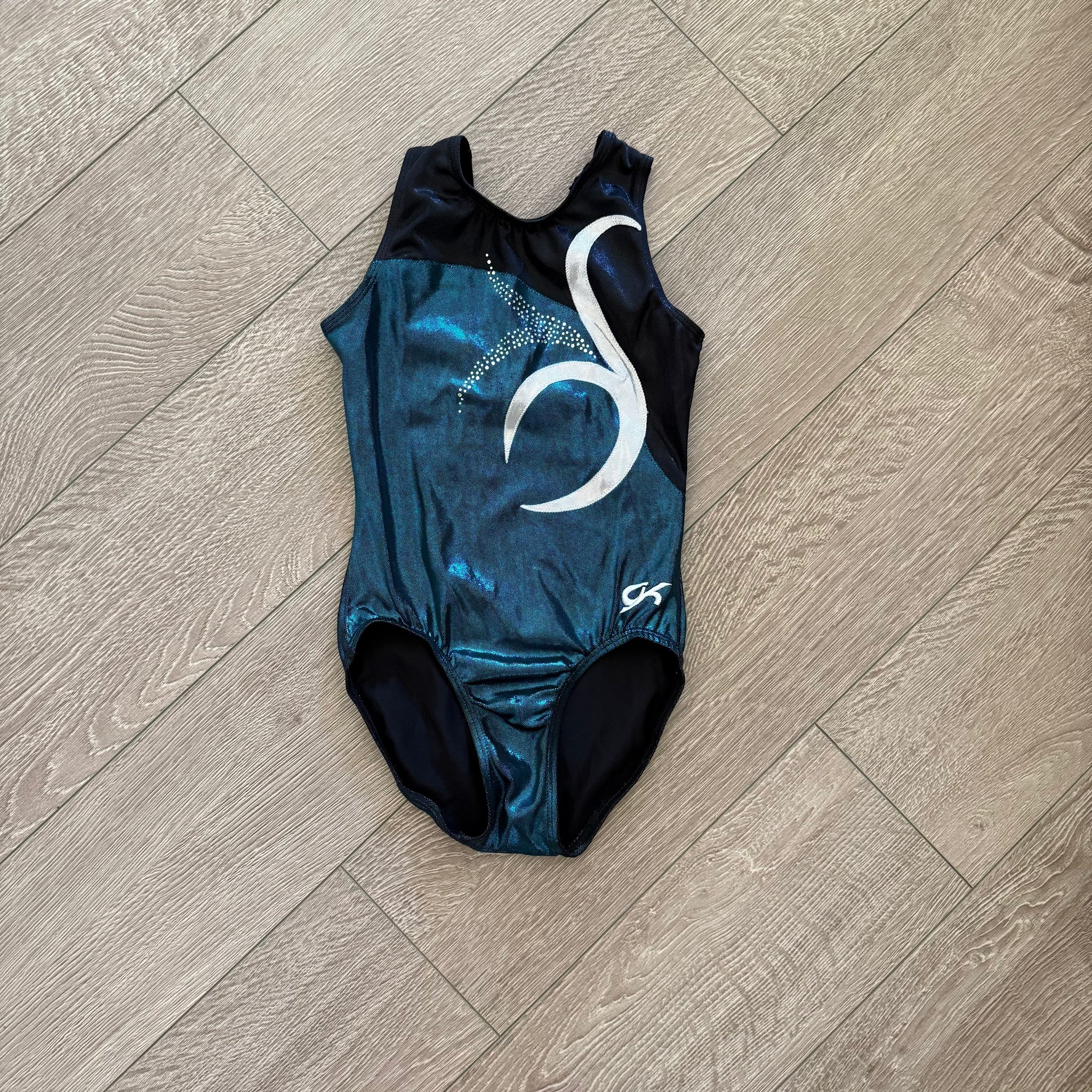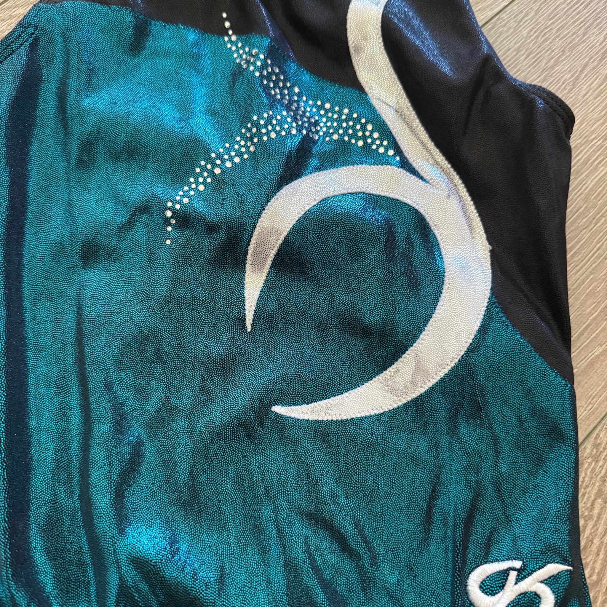 GK Elite, Shiny Teal Green and Black Leotard, CL Child 8/10 - Final Sale