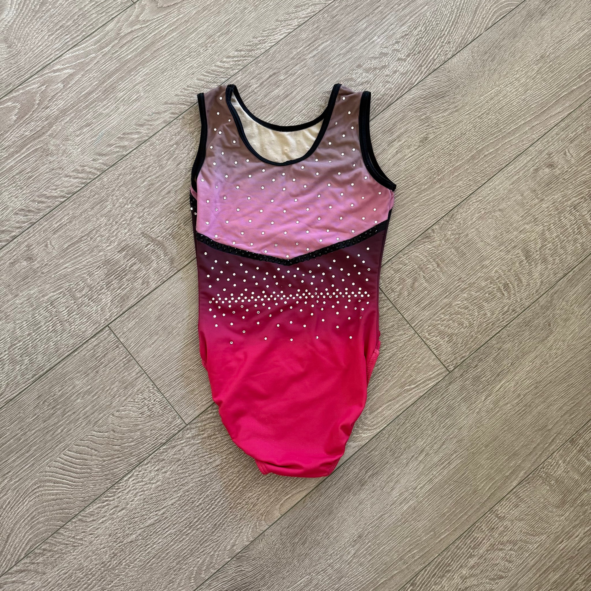 Lila Chelene, Black Red Ombre Gymnastics Leotard with Crystals, Child 9/10 - Final Sale