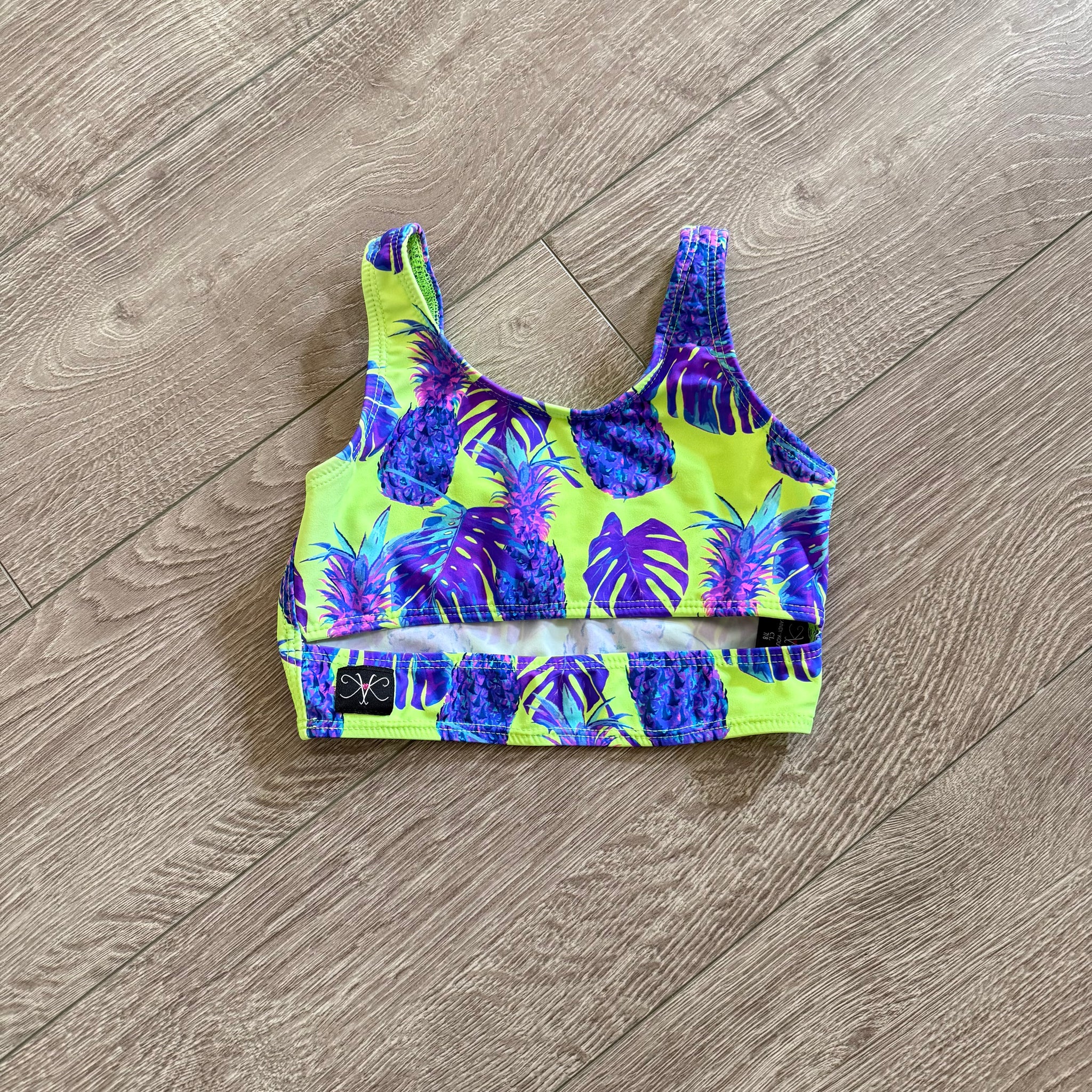 Kandi Kouture, Purple Neon Green Pineapple Crop Top, CL Child 7/8