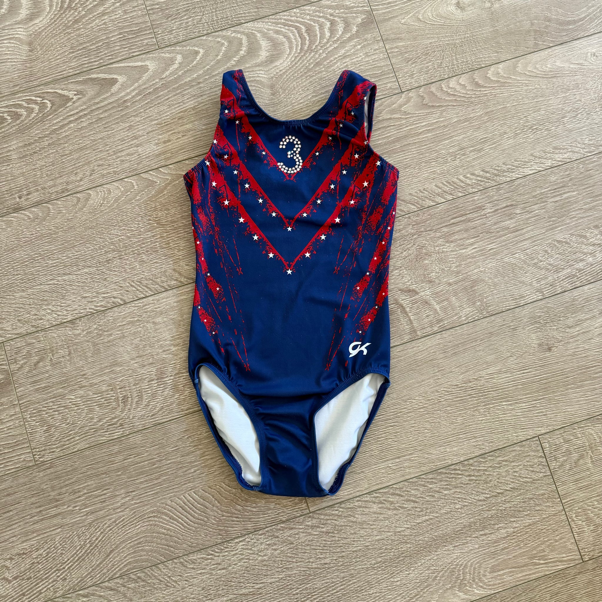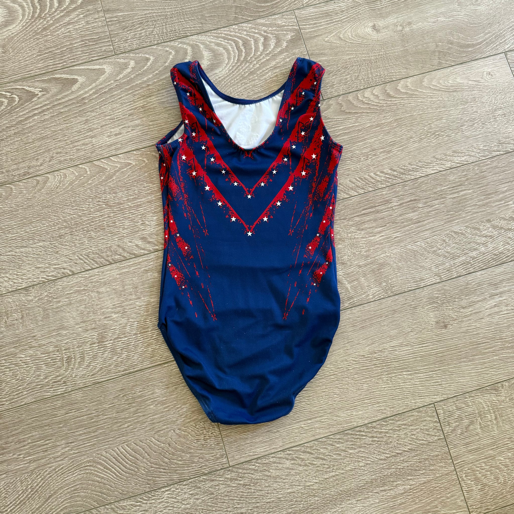 GK Elite, Red Navy Leotard with Gems, CL Child 8/10 - Final Sale