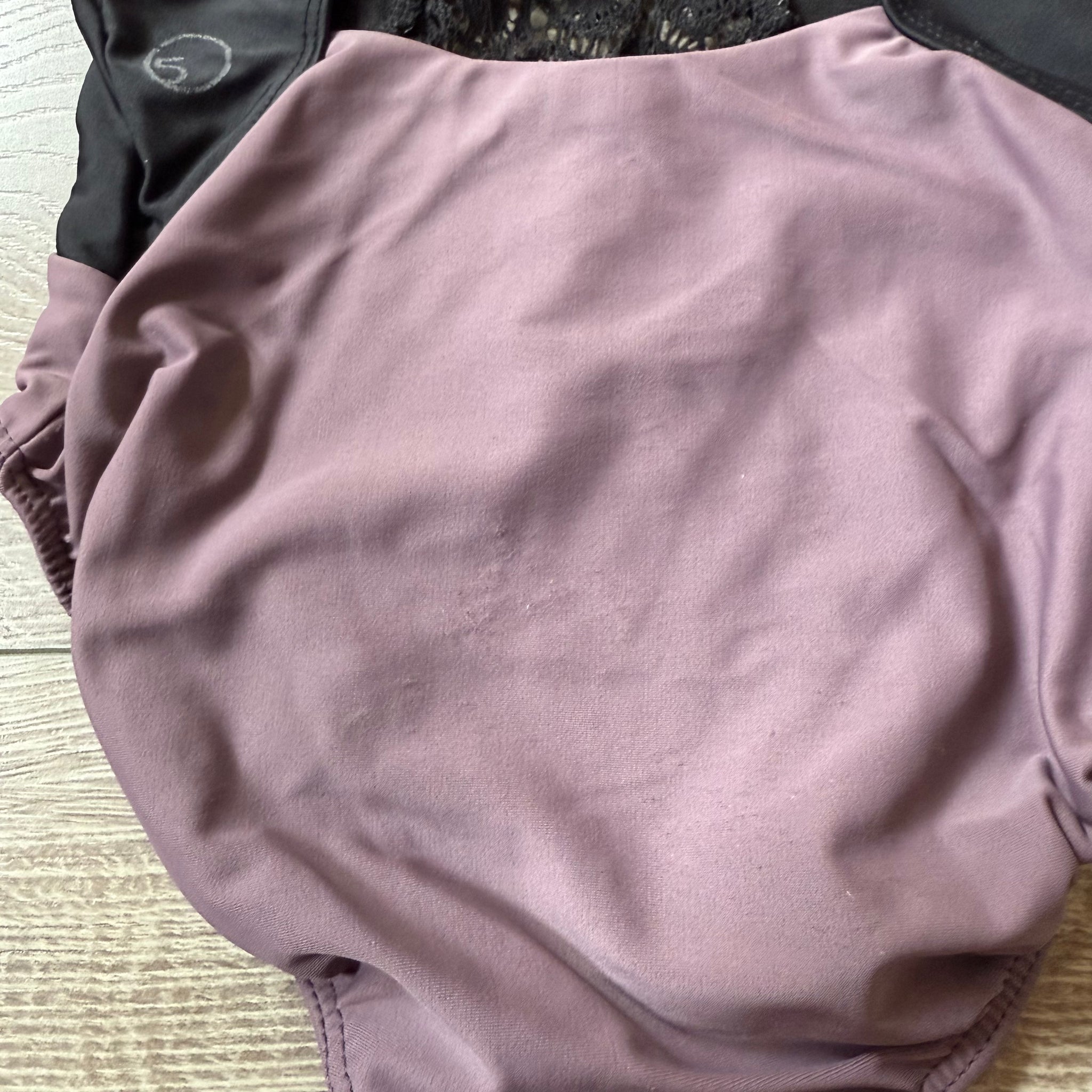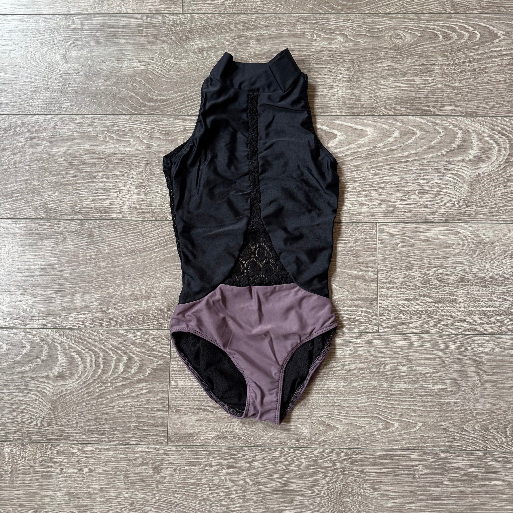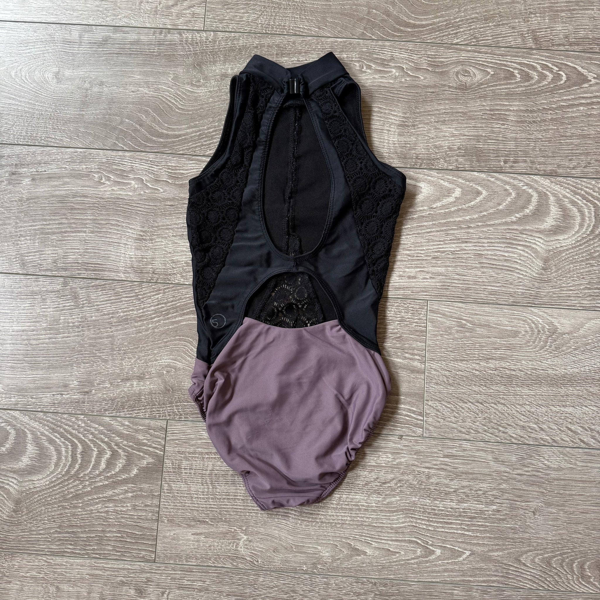 Five Dancewear, Open Back Lace Detail Leotard in Black Purple, YL Child 7/8 - Final Sale