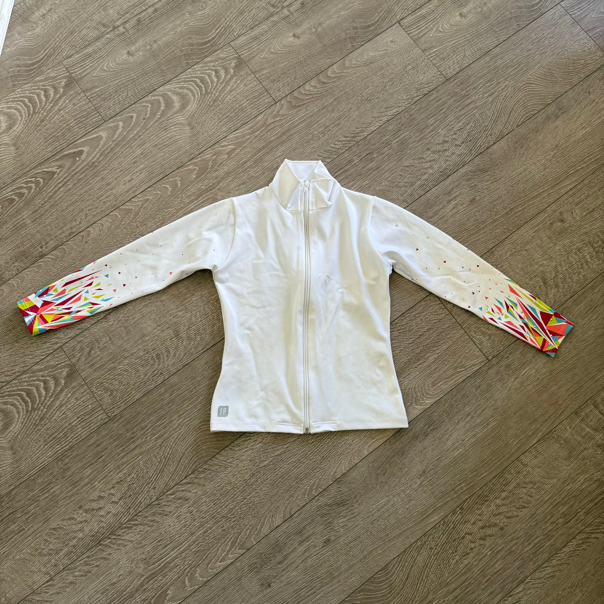Sylvia P, Elevate Gymnastics Uniform Jacket in White with Gems, Child 6 - Final Sale